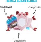 Hidden Toy Surprise: The fun doesn’t stop on the surface! Inside this toy is a hidden surprise just waiting to be discovered. Perfect for pups who love an extra challenge, this bonus toy keeps playtime exciting and full of unexpected adventures! Double The Squeak: This toy comes with not one, but TWO squeakers, because sometimes one just isn’t enough! The duo of squeaks amps up the excitement, keeping your pup engaged with every bite. Perfect for dogs who love their toys to talk back! Crazy Crinkle: This toy is designed for dogs who crave that satisfying “crunch”! The crazy crinkle sound adds extra excitement to playtime, making it perfect for keeping distracted pups focused and entertained with every bite they can hear! Interactive Dog Toy: This toy is designed to be longer-lasting and surprise your pup with multiple ways to play! Non-toxic plush from quality manufacturers makes it safe for all pets so you can enjoy playtime without worry. From the makers of BarkBox, our toys are made by dog lovers to bring joy to dogs and their people. With our 100% Happiness Guarantee and U.S.-based customer support, we're always here to help or just talk about your dog. We love doing that. Meet Sheila Sugar Glidah: If your doggo's a feisty fella, they'll find a sweet surprise inside— a squeaky chocolate candy dog toy with two squeakers! This sugar glider dog toy is irresistible, just like her favorite sweets. Sheila also features crazy crinkle material that turns every game of tug and fetch into a smashing, thrashing delight. Perfect for small dogs, Sheila is ready to be the sweetest addition to your pup’s playtime adventchas!
