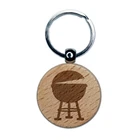BBQ Barbecue Grill Engraved Wood Round Keychain Tag Charm