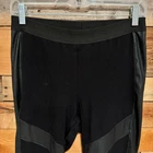 Great preowned condition! Blocks of faux leather lend enviable edge to sleek-and-skinny leggings by BCBGMAXAZRIA. Elasticized waist Faux leather and ponte knit panels Pull-on style Imported MATERIAL & CARE Rayon/nylon/spandex; contrast: polyurethane Machine wash