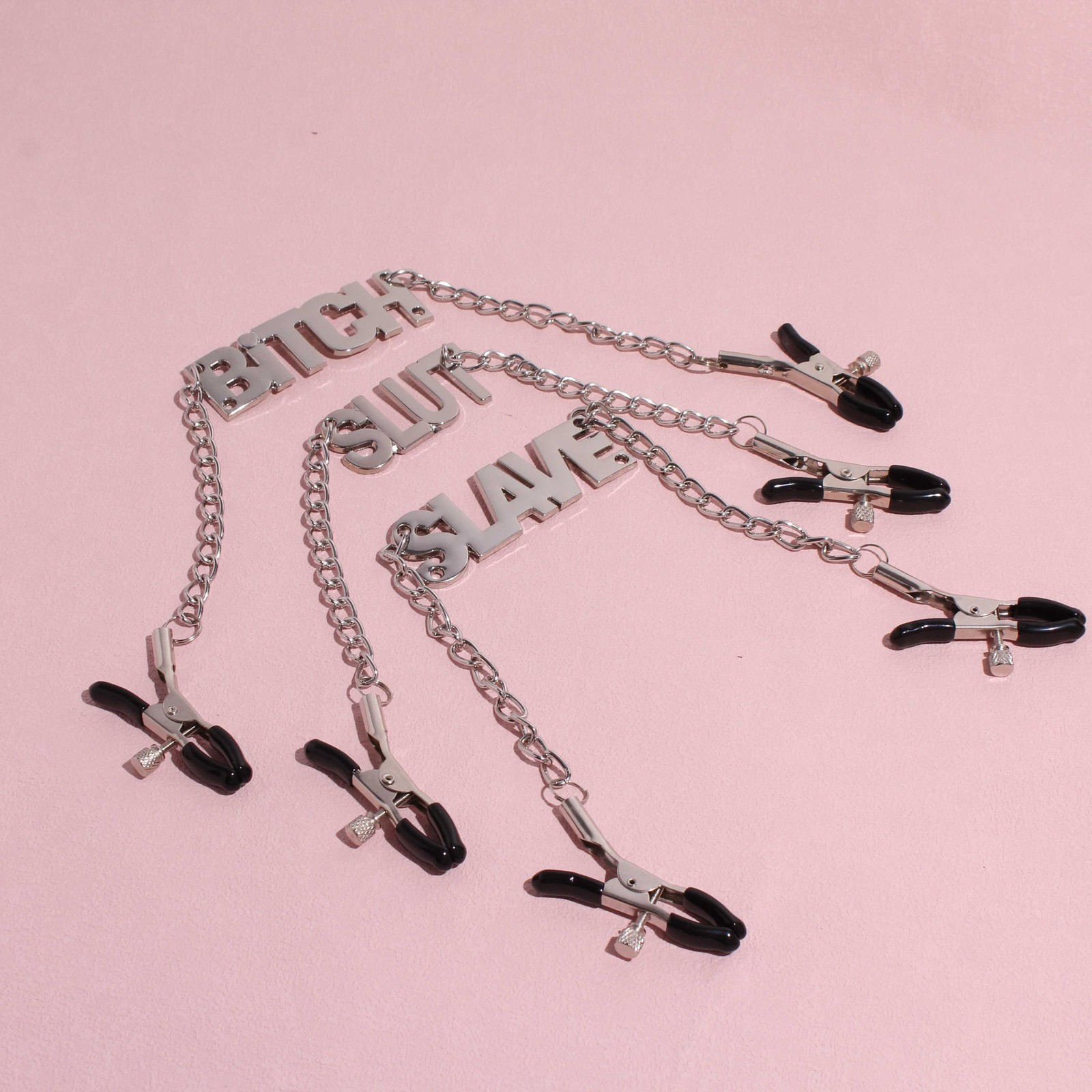 Private Shipping Specification: Discreet shipping! B rand New Color: 3 style #SLAVE #BATCH #SLUT Package includes: 1 x BDSM Breast Clamp