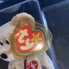 This rare 1999 signature bear is a must-have for any Beanie Babies collector. With its soft plush fur and adorable face, this bear is sure to bring joy to children and adults alike. The brand, Ty, is known for its high-quality stuffed animals, and this Beanie Baby is no exception. Featuring the character family of Beanie Babies and a recommended age range of 1+, this toy is perfect for playtime or display. The custom bundle is not included, but the photos provide a clear view of the item. Don't miss out on the chance to add this special Beanie Baby to your collection.