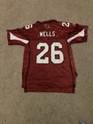 The product is a youth medium replica jersey of Beanie Wells from the Arizona Cardinals, officially licensed by the National Football League (NFL) and manufactured by Reebok. It is red in color and designed for boys who are fans of the team and player. This jersey is perfect for young fans looking to show their support for the Cardinals and Beanie Wells while emulating their favorite player on the field. ***Small spot on side, please see last photo.