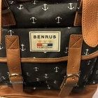 The BENRUS Scout Backpack in navy blue and white features a unique anchor pattern, making it a stylish choice for both men and women. Made from cloth and faux leather, this large backpack offers a magnetic closure and a drawstring for added security. The adjustable straps provide comfort while the fully lined interior allows for easy cleaning. With its military-inspired design and colorful theme, this backpack is both practical and fashionable, perfect for everyday use or outdoor adventures.