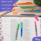 Always a good idea to do a test on a blank page of the Bible to confirm no bleed, as some Bibles have extra thin paper. A good idea to test and confirm. Bible Study Kit With Gel Highlighters And Pens No Bleed Through, Amazing Bible Highlighter and Pens Fine Tip set Planner Supplies Gifts (10 Pack) ON SALE! Full Price Normally $24.98 BIBLE STUDY SUPPLIES - The Bible highlighters and pens no bleed includes x5 Dry Highlighter x5 Colored Bible Pens for journaling BIBLE SAFE - No bleed through thin paper like the regular markers do. The gel highlighter and fine point ball pens are Bible friendly GEL HIGHLIGHTERS - The wax makes a great medium for the ink because it keeps the ink from soaking through to the other side of the page. BIBLE PENS - No Smear, Draw Smooth, Fast Dry and Consistent writing. Ball pen design will prevent ink bleed. HELPFUL BOOK ACCESSORIES- These Bible journaling items come with all that you need to embrace your faith and engage with scripture through art in a colorful, organized and creative way AMAZING DESIGNS - Enjoy your journal time with the scripture markers and beautiful pens with great quality and unique designs A PERFECT GIFT - A great way to surprise your loved ones with a great set of Bible accessories. FOR MORE BIBLES & BIBLE STUDIES, VISIT OUR EBAY STORE: https://www.ebay.com/str/impactchristianbooks/BIBLES-STUDY-RESOURCES/_i.html?store_cat=16263743015
