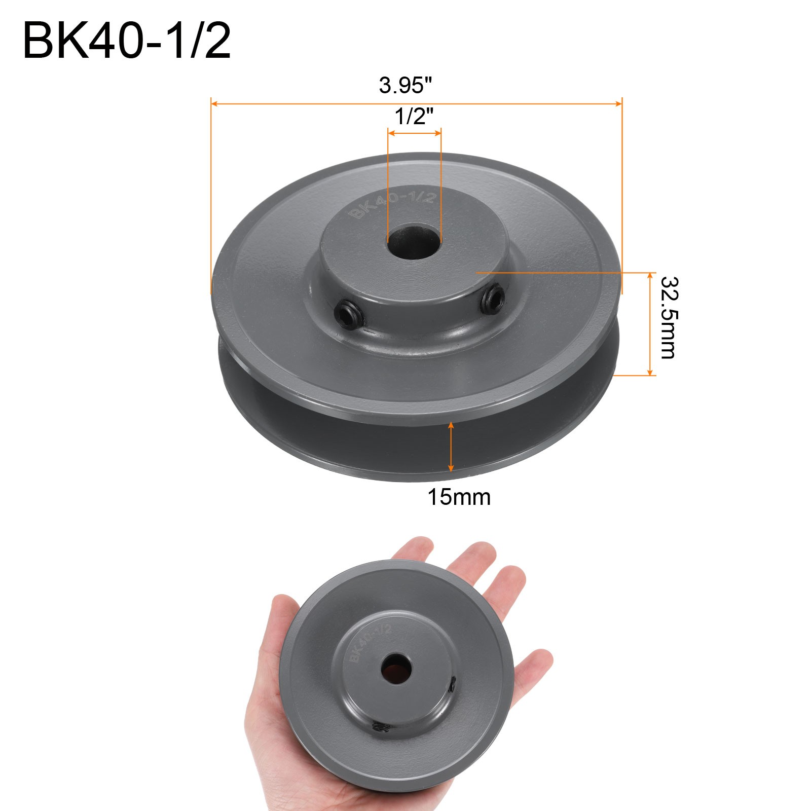 Document Description:Material: Made of cast iron, this groove web sheave offers resistance to wear, galling, sturdy and stable.Performance: With smooth operation, minimal noise, low vibration, easy adjustability, and overload protection during transmission, this groove web sheave guarantees secure and efficient use.Accurate Specifications: The precise dimensions of this groove pulley, including the outside diameter, hole size, and fitting height, facilitate precise workmanship and enhance overall efficiency in your operations.Application: This V belt sheave is fit with a wide range of V belts used in various drives, making it suitable for diverse applications such as agricultural machinery, tractors, mining equipment, lathes, and more.Specification:Treatment: Electrophoresis GrayColor: GrayMaterial: Cast IronNotes:Manual measurement, please allow slight errors in size.The color may exist slight difference due to different screen displays. BK40-1/2 V-Belt Sheave 1/2"Bore 3.95"OD Single Groove Web Sheave Description: Material: Made of cast iron, this groove web sheave offers resistance to wear, galling, sturdy and stable. Performance: With smooth operation, minimal noise, low vibration, easy adjustability, and overload protection during transmission, this groove web sheave guarantees secure and efficient use. Accurate Specifications: The precise dimensions of this groove pulley, including the outside diameter, hole size, and fitting height, facilitate precise workmanship and enhance overall efficiency in your operations. Application: This V belt sheave is fit with a wide range of V belts used in various drives, making it suitable for diverse applications such as agricultural machinery, tractors, mining equipment, lathes, and more. Specification: Treatment: Electrophoresis Gray Color: Gray Material: Cast Iron Notes: Manual measurement, please allow slight errors in size. The color may exist slight difference due to different screen displays. Hot Item Payment 1.We accept eBay payment . 2.Payment must be received within 7 business days of auction closing. Shipping 1.We ship to your eBay or Paypal address. Please make sure your eBay and Paypal address is correct before you pay. 2.Items will be shipped within 1-3 business day when we received payment. 3.Delivery time depends on destination and other factors. Description Policy BK40-1/2 V-Belt Sheave 1/2"Bore 3.95"OD Single Groove Web Sheave Description: Material: Made of cast iron, this groove web sheave offers resistance to wear, galling, sturdy and stable. Performance: With smooth operation, minimal noise, low vibration, easy adjustability, and overload protection during transmission, this groove web sheave guarantees secure and efficient use. Accurate Specifications: The precise dimensions of this groove pulley, including the outside diameter, hole size, and fitting height, facilitate precise workmanship and enhance overall efficiency in your operations. Application: This V belt sheave is fit with a wide range of V belts used in various drives, making it suitable for diverse applications such as agricultural machinery, tractors, mining equipment, lathes, and more. Specification: Treatment: Electrophoresis Gray Color: Gray Material: Cast Iron Notes: Manual measurement, please allow slight errors in size. The color may exist slight difference due to different screen displays. Hot Item Payment 1.We accept eBay payment . 2.Payment must be received within 7 business days of auction closing. Shipping 1.We ship to your eBay or Paypal address. Please make sure your eBay and Paypal address is correct before you pay. 2.Items will be shipped within 1-3 business day when we received payment. 3.Delivery time depends on destination and other factors.