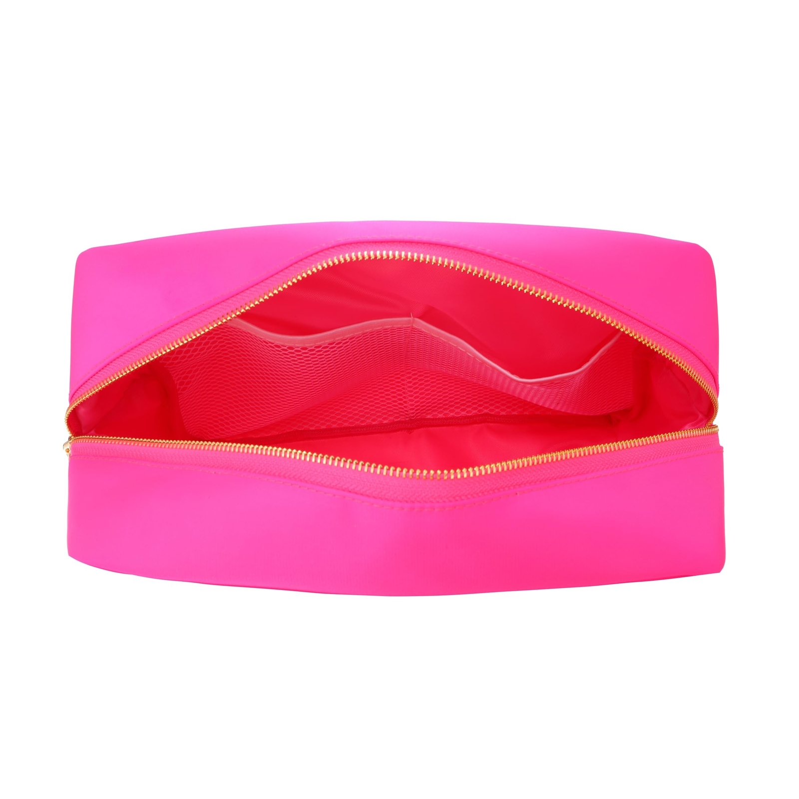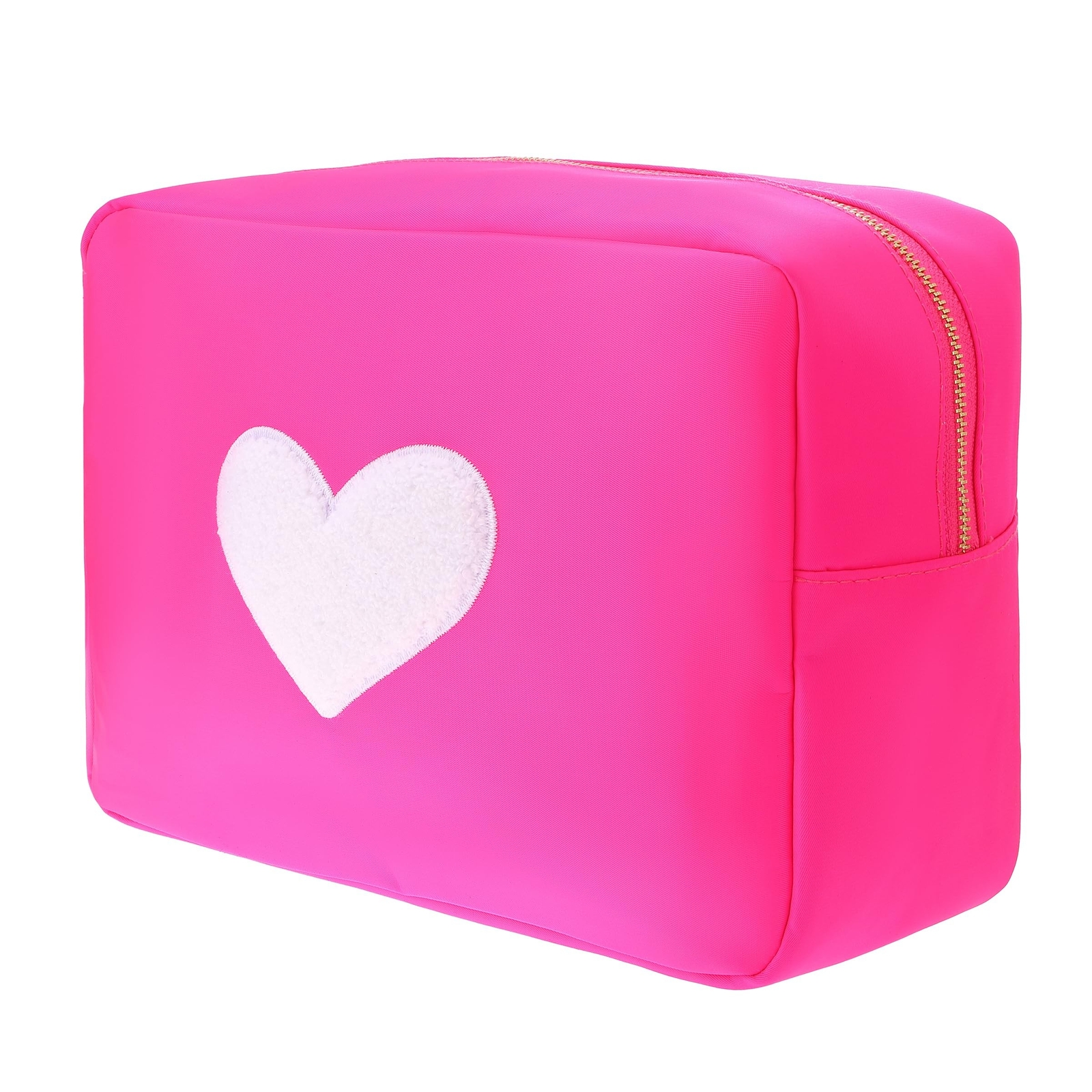 BLOC Bags Travel Makeup Bag, Cosmetic Bags for Women, Large Cute Toiletry Bag, XL Make up Bag, Medium Beauty Bag with Chenille Patch, Inside Zipper Pouch and Mesh Pockets (White Heart, Hot Pink) Product Details Color: Hot Pink Style: White Heart Brand: BLOC MPN: BCBAXL UPC: Does not apply EAN: Does not apply Product Dimensions: 11 x 5 x 8.5 inches Item Weight: 7.4 ounces Department: Womens Country of Origin: China Item model number: BCBAXL Unique, Fun, Fashionable Design: The Bloc Bags Large Beauty Bag is the perfect medium makeup bag for travel and can be used for your cosmetics and toiletries. The XL bag is made of a water-resistant nylon, top metal zipper closure, and has an exclusive chenille patch for the ultimate in fun fashion. This make up pouch is ideal for travel, home, or vacation, and can even be carried in a purse as your everyday cosmetic organizer. Perfect Gift: This large toiletry bag is the ideal gift for a wife, mother, sister, or friend. Whether it is for a birthday gift, a teacher gift, Mothers Day, Valentines, or as a Christmas gift, a Bloc Bag is always sure to make her smile. With unique designs, and a variety of colors, this large cosmetic bag makes travel easy, and is a cute makeup and skin-essentials accessory for any woman. Ideal Size: The Bloc large make up bag measures 8.5 inches, by 11 inches, by 5 inches, and has plenty of space for your skin-care essentials. This cosmetic bag holds makeup, toiletries, and personal products. With a main zipper compartment, an interior zipper pocket, and an interior mesh organizer, the XL large makeup bag is the perfect toiletry bag for travel or vacation. Designer Details: Bloc Bags Beauty Bags are instantly recognizable, with a designer aesthetic, a variety of colors, unique and exclusive chenille designs, water-resistant nylon, and gold tone metal zippers. They are designed to provide the ultimate in organization and function in a lightweight, fun, and fashionable design that any woman will love. Create a Look for Yourself and Care for Others: For every BlocBag you purchase, we donate a toiletry bag to a child in foster care through our Care Bags program. Bloc Bags toiletry bags, makeup bags, and cosmetic bags for women compliment any style and look, for travel, home vacation, or everyday use. They come in a variety of colors and styles and are the perfect gift. And when you purchase, we always donate one for one. The Large Makeup Bag by Bloc is the perfect travel cosmetic bag for women. These cute travel toiletry bags keep cosmetics and skin-care essentials loving secured when at home and on the go. The Bloc Bags XL Beauty Bag is a fun and fashionable make up bag: with a darling chenille patch, durable water- resistant nylon material, convenient top zip closure, an inside zipper pocket, and a mesh interior divider. It is the ultimate large multi compartment toiletry cosmetic bag. With a variety of colors, sizes, and chenille characters, you can find the perfect makeup pouch to match your style and fashion. Bloc Bags make the perfect gift as well. Any woman would be thrilled to receive this Bloc Beauty Bag as a Christmas gift, a Valentine’s Day gift, a teacher gift, a Mother’s Day gift, or a birthday gift.