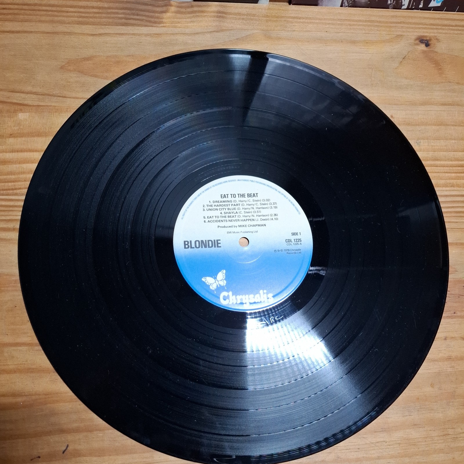 Some very light scratches to records and wear to sleeve check photos for condition. This product is a 1979 UK first pressing vinyl LP of Blondie's album "Eat to the Beat" on Chrysalis Records. The record is 12" in size, with a black vinyl colour and in excellent condition (both the record and sleeve grading are marked as EX). The album features popular genres such as pop, punk, and new age, with a punk/new wave style. This original first pressing includes the original inner sleeve and cover, making it a sought-after collectible for fans of Blondie and classic 80s music.