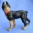 BOSTON TERRIER HUBLEY CAST IRON PAPERWEIGHT dog figurine...... 1930/40s heavy solid cast iron ....detail shows eyes, eye lids. nose, mouth, jowls, alert ears, hips, shoulders.....hand painted red collar.....,,. magnet sticks... dog is 3"long 3"tall ... paint wear / chips from age and use... no mark...see my other FRENCH BULLDOGS(last photos)...check out my other 16 BOSTON TERRIERS from ROSENTHAL/HEUBACH / Germany....copyright Morning Line .......please keep in mind ebay charges me 20% on the total order including shipping.......