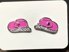 Elevate your accessory game with these BP Simply Studs, a dazzling pair of earrings that capture the essence of playful sophistication. Each earring showcases a charming cowboy hat design, meticulously crafted in pink enamel and accented with sparkling white cubic zirconia stones that catch the light with every turn. The pavé setting ensures a harmonious blend of stones, offering a captivating sparkle that's sure to draw attention. These rhodium-plated studs are designed for versatility, fitting a variety of occasions from casual gatherings to more formal celebrations. The butterfly closure provides a secure and comfortable fit for lobe decoration. With their unique blend of Western flair and contemporary style, they're a perfect addition to any jewelry collection, whether you're looking to commemorate a special event or simply adding a touch of whimsy to your everyday wear. 1pair NWOT