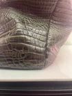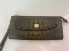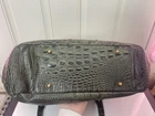 BRAHMIN Green Alligator Pattern Purse Matching Wallet Item is preowned, used. Item shows wear, marks, scratches, etc. ISSUES: Small chip of the gold coating on the front clasp Small scratch in the exterior leather on one side revealing white Small scratch in the exterior leather on the other side revealing white\ Faint pen marks on the interior lining near the pen holders Chipping of the black edging detail on the handles Pink/white stain of the lining in the one of the pockets of the wallet Will include a BRAHMIN dust bag not pictured. Please SEE PHOTOS in DETAIL for item condition. Disclaimer: I try to be as transparent as possible with an flaws and issues, but it is possible somethings might be missed. Please SEE PHOTOS as they represent the item.