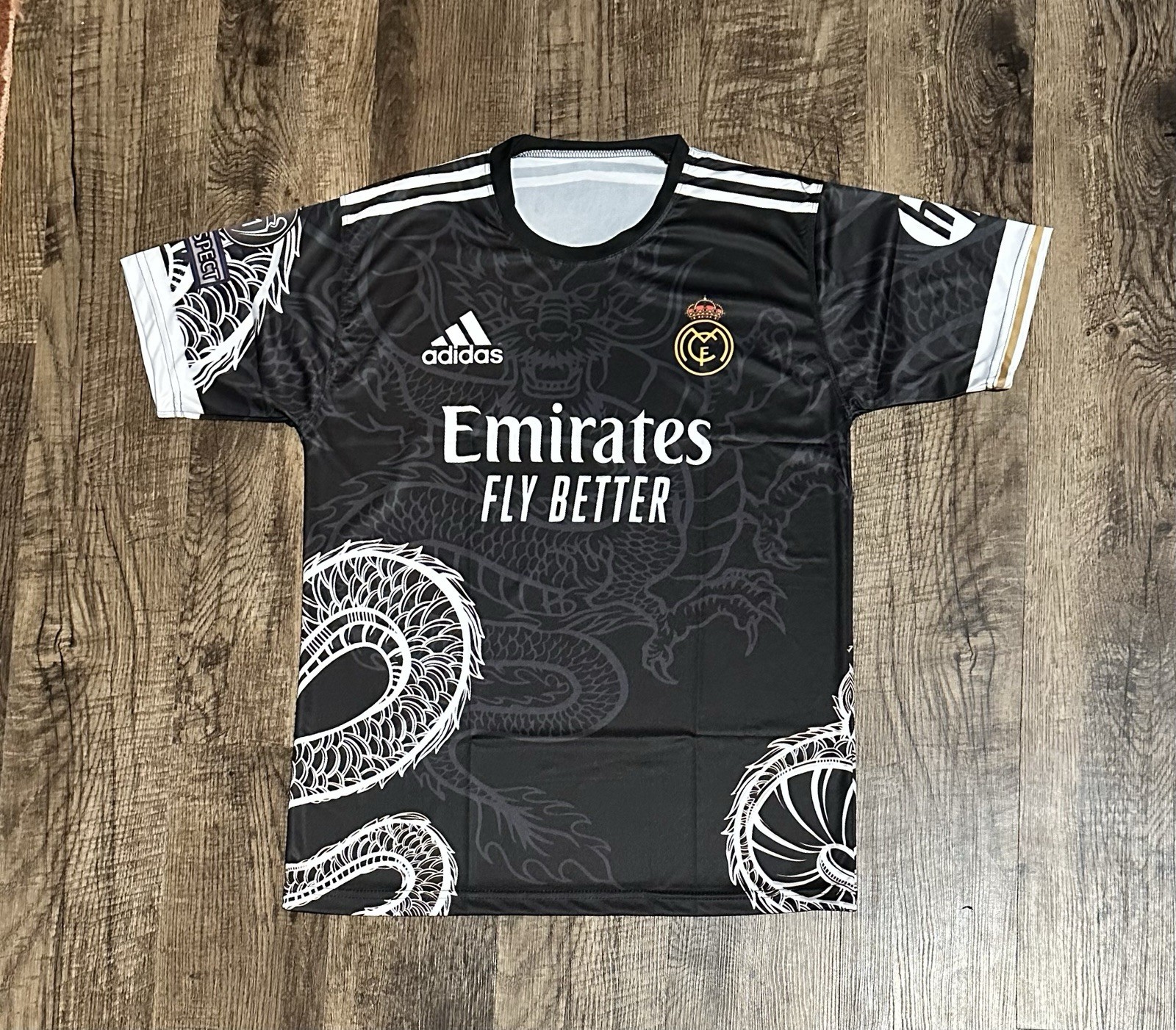 The product is a brand new men's Adidas black Cristiano Ronaldo jersey, representing Real Madrid in soccer. This jersey is designed specifically for fans of both Adidas and Cristiano Ronaldo, featuring the iconic black color associated with the player and team. It is a must-have item for any supporter looking to show their allegiance to their favorite club and player.