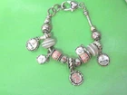 Material:UnknownMain Stone:CrystalBrand:HandmadeClasp Type:LobsterPersonalize:NoSecondary Stone:unknownColor:PinkBase Metal:unknownStyle:Bangle, Beaded, Charm, Charm BraceletType:BraceletMetal:UnknownMain Stone Creation:does not applyTheme:Breast Cancer Awareness