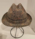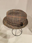 BURBERRY FEDORA VINTAGE 100% PURE WOOL Size 7 1/8 58 In good preowned condition. Outside shows no wear. The sweatband area shows no wear or stains. Made of 100% Wool. Pattern colors are browns, greens, orange/rust On one side are feathers in brown and orange. Two tags inside. Both have 7 1/8 and 58 Please see photos, questions please message before purchasing.