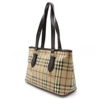 BURBERRY Nova Check Plaid Tote Bag Shoulder Bag PVC Leather Beige Dark Brown