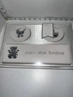 Baby Keepsake 4 Piece Keepsake Box Set with Birth Certificate Storage Box white Includes: includes birth certificate, tooth/curl holder and keepsake box. Keep all of baby's special memories in a safe place forever Free ship