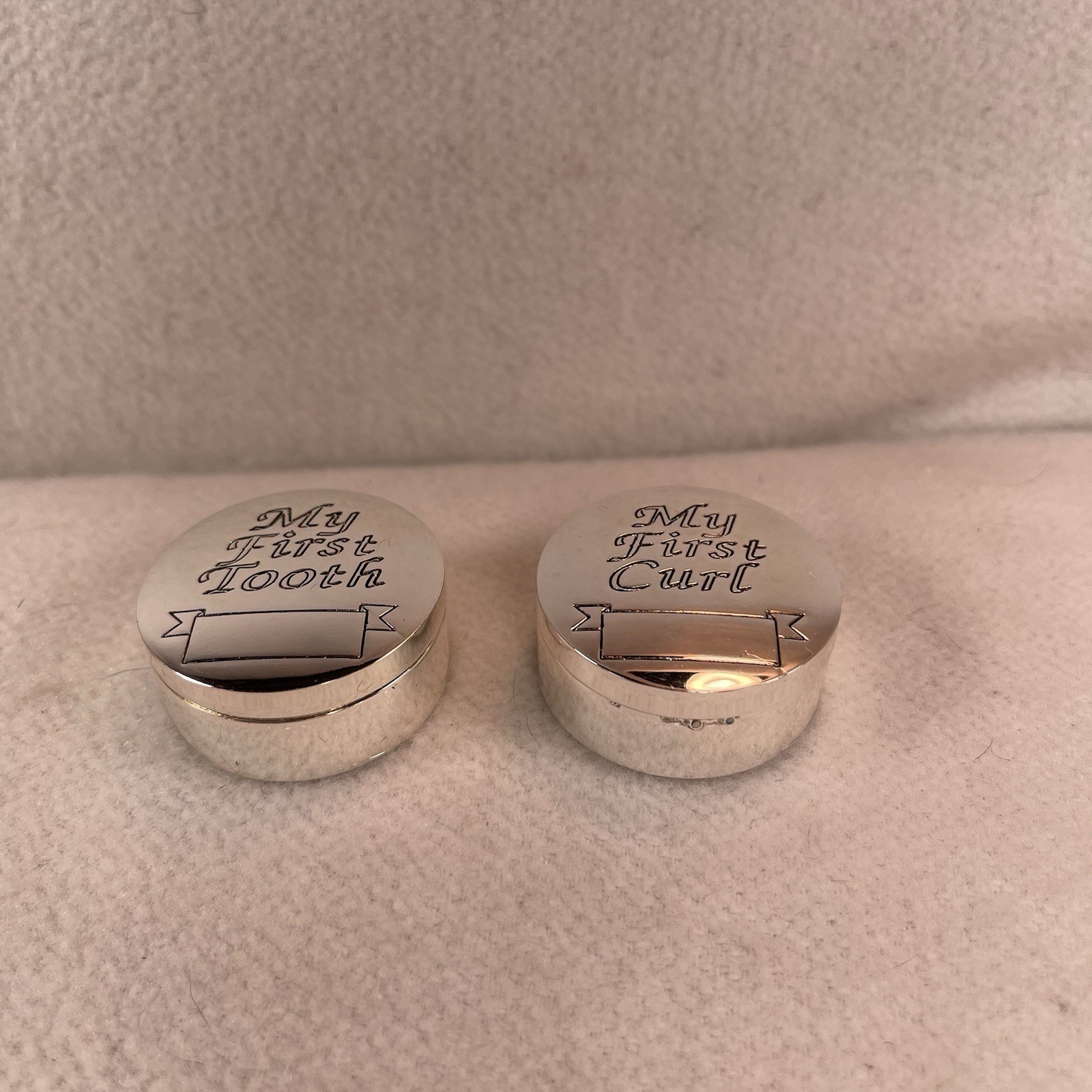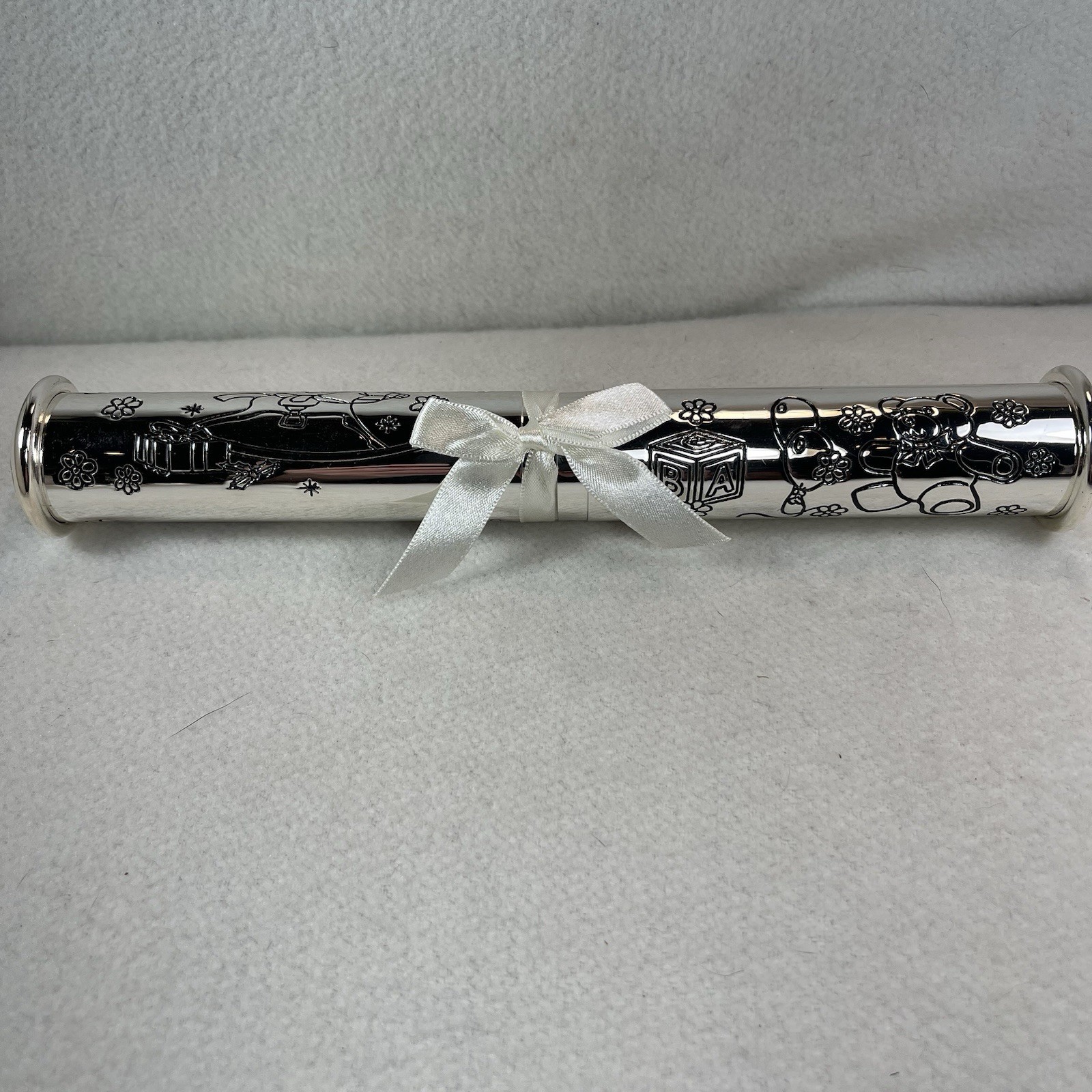 This Baby Keepsake Gift Box Set is a special and unique way to store your baby's first tooth, curl, and birth certificate. The silver color and novelty theme make it a charming and sentimental addition to any baby's collection. Perfect for capturing memories of your little one's special moments, this set is a thoughtful and meaningful gift for any new parent. Excellent unused condition. New in original box.