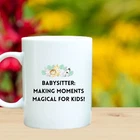 Babysitter Coffee Mugs Funny Babysitter Mug Babysitter Coffee Mug Babysitter Gift Babysitter Mugs Baby Sitter Gift For Babysitter Product Details.. This high quality 11oz. ceramic white mug has a premium hard coat that provides crisp and vibrant color reproduction sure to last for years. Perfect for all hot & cold beverages. The highest quality printing possible is used. It will never fade no matter how many times you wash it. Material: 100% Ceramic. Print both sides. Dishwasher and Microwave Safe. High Gloss + Premium White Finish. Printed in the U.S.A. Personalized & Custom. We support personalized and custom mug to add custom, when placing an order, you can add notes to the "order note" in shipping address section. Also you can contact us directly via message. Shipping Info. Ready to ship in 1 to 2 business days, All products are made-to-order and proudly printed in the United States. Shipped by USPS and DHL, You will receive your order in 5-7 days. Replace & Refund. All products are defective during shipping broken, chipped will be replaced free of charge. You are not satisfied with the product, we will refund 100% money to you. If any other issues arise, please do not hesitate to message, we would be more than happy to assist you.