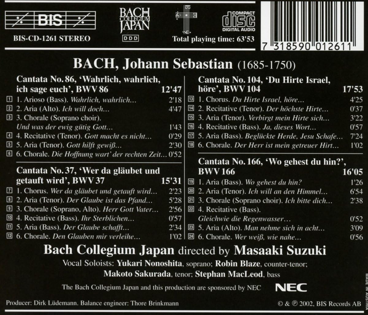 Further Details Title: Cantatas Vol. 19 (Suzuki, Bach Collegium Japan) Condition: New Format: CD EAN: 7318590012611 Edition: Album Genre: Classical Style: Opera & Vocal Release Date: 09/30/2002 Description: Bach Collegium Japan Country/Region of Manufacture: Portugal No Of Discs: 1 Artist: Bach Collegium Japan Record Label: Bis MPN: BISCD1261 Release Year: 2002 Missing Information? Please contact us if any details are missing and where possible we will add the information to our listing.