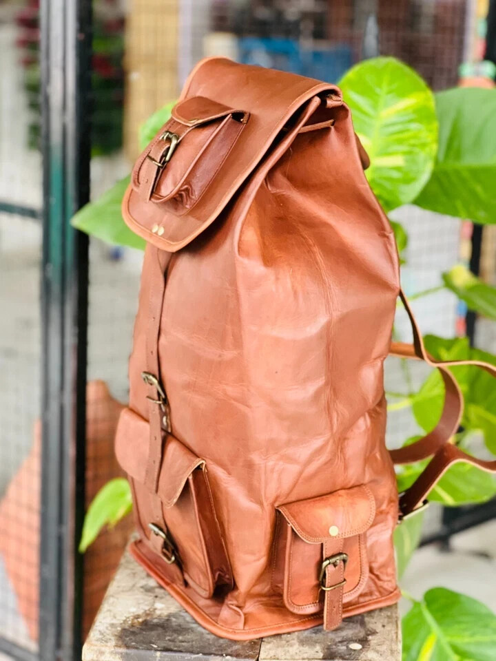 Product specification:- Item Description:- Material- Real Goat hide 1 Front pocket and both side pocket 16x8x8" inch small Handles on top Inside green color waterproof canvas lining. 56" long adjustable length shoulder strap. Real Brass metal accessories used in this Bag. Made by professional and experienced artisans from Rajasthan. Treated by natural ingredients. Natural leather smell will gone within few days of usage. Eco friendly and weather proof bag.