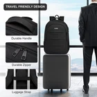 Large Capacity: Black backpack size : 17.7in x 12.2in x 7in, 30L. The large school backpack has 4 large compartments and 2 side pockets - 1 padded laptop compartment that can hold 15.6 inches. A spacious main compartment, with multiple pockets, pen bags and compartments for small items in front, makes your items in good order and easier to find. USB Charging Port : With an external USB charging port and built-in a charging cable inside, and there is a special pocket inside the laptop backpack to place the power bank (Note: power bank is not included), providing you with a more convenient way to use your mobile phone while walking or traveling. Laptop Backpack makes your trip and travel more convenient wherever you go. Anti-Theft Pockets & Luggage Strap: This work travel backpack for men has an embeddable luggage strap that slides easily over your luggage/suitcase handle to relieve your back and shoulder pressure during use. The hidden anti-theft pocket on the back of the backpack for men can protect your smart phone, wallet, passport, other valuables from being lost for all basic daily needs for college, work, travel, hiking, business trips. Ergonomic & Water proof Fabric: Comfortable airflow back design, made of highly elastic breathable sponge and honeycomb shock-absorbing fabric, thick and soft, heat dissipation fast. Widened, adjustable shoulder straps reduce weight and protect your back and shoulders. High-density polyester waterproof oxford cloth keeps your belongings from getting wet. Stylish Back Pack for All Occasions: This is a sturdy computer daypack, ideal gift for grandson, son, friends, lover, teachers, students, boys, girls, mens, womens. A great choice for office work backpack, travel backpack for men, school bookbag for boys, college backpack, daily use basic backpack, nurse backpack, teachers backpack, all indoor and outdoor activities. Age: over 3 years old
