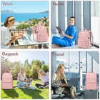 Backpack for Women laptop Bag - Laptop Backpack with USB Charger Travel Business Computer Backpack for Work College Backpack for Teacher Casual Waterproof Bookbag for Nurses PINK 【Large Capacity Backpack with Laptop Compartment】- This laptop backpack Total 4 compartments 22 pockets. The laptop compartment fit for 15.6 inch computer. The main compartment area holds A4 folders, work documents, clothes and other daily necessities. 3 front pockets for small items such as ipad, cell phones, Chargers, keys, pens, wallets etc. 2 sides pockets holds a 32oz water bottle and umbrella pretty well and more for a 3 day weekend. 【Convenient Luggage Strap & Anti-theft Design】- Luggage strap on back of the computer backpacks allows backpack fit on luggage/suitcase, freeing your hands on a business trip. Waterproof travel backpack fits under the seat also meets airline carry-on requirements. Adjustable shoulder strap design with mesh fabric for breath ability, it can distribute the weight of bookbag decently on our back pack, providing you with more comfort during your trip. 【Work Backpack with USB Charging Port】- 15.6-inch backpacks for women have an external USB charging port and Set-in charging cable that can be easily connected wherever you are. It is more convenient and comfortable for you. (POWER BANK IS NOT INCLUDED) Womens laptop backpack is the best choice for you. 【Multifunctional & Serviceable Backpack】- Fashion backpack is equipped with an Anti-theft pocket on the back and Anti-theft zipper on main compartment protects your valuable items from thieves. Travel backpack is made of nylon and leather, exquisite and Serviceable, waterproof, light and soft, and cleans easily. Perfect as a nurse backpack, college backpack, work backpack, airport bookbag, laptop bag bookbag, nurse work bag, business backpack. 【After-sale Guarantee & Nice Gifts】- fashion women backpack can be fits for everyone and every occasion. High quality and nice stylish looking can be a best gifts for your mother, friends, family on some special days like Mother's Day, Birthday, Adult Valentine's Day, Christmas etc.