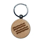 Bacon Strips Doodle Engraved Wood Round Keychain Tag Charm