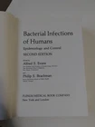 The product is a textbook called "Bacterial Infections of Humans: Epidemiology and Control Second Edition" authored by Evans. This hardcover book falls under the subject areas of Science and Medical, with a specific focus on Epidemiology. It is geared towards educating readers on the topic of bacterial infections in humans, examining their epidemiology and providing information on how to control these infections.