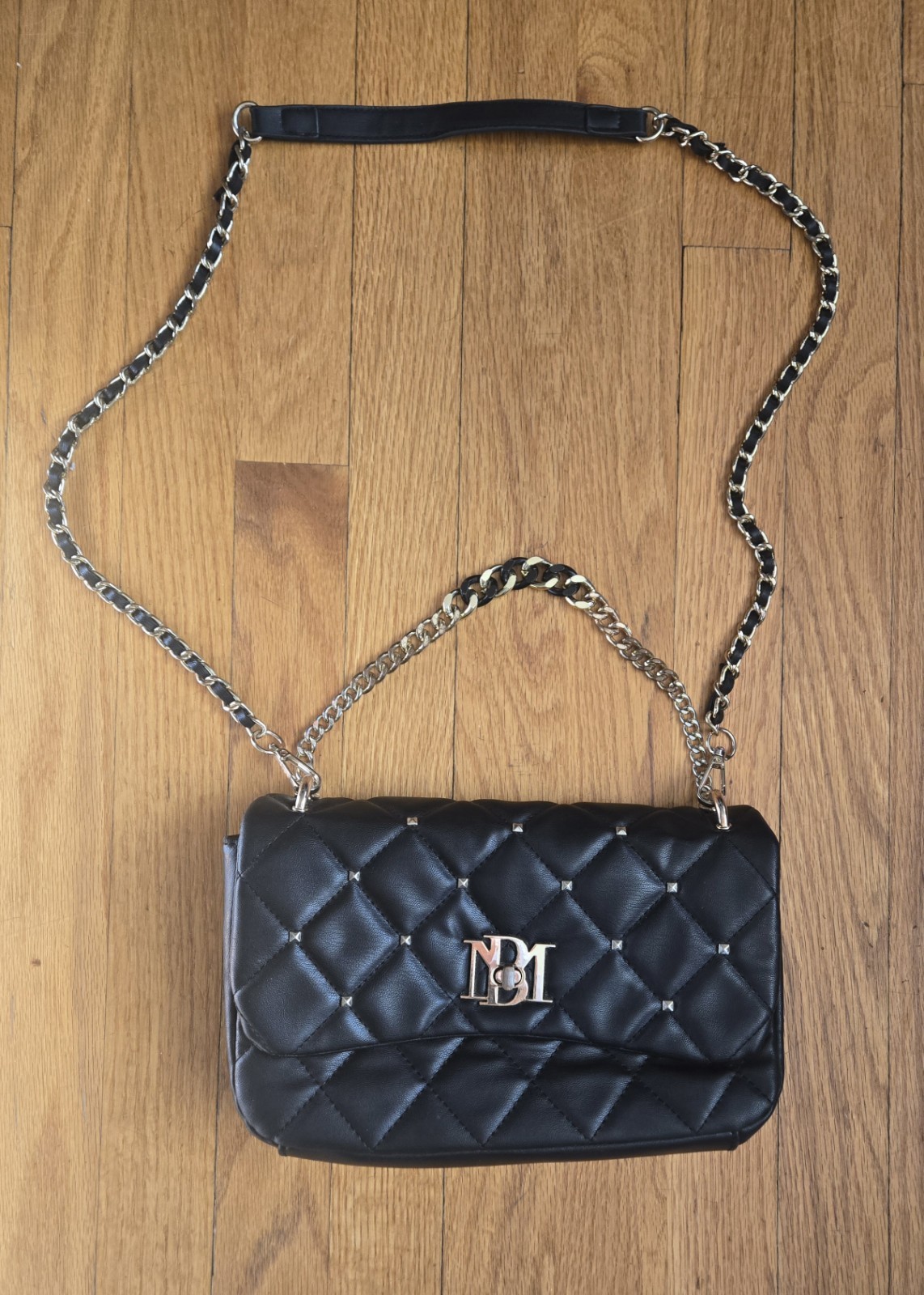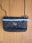 The Badgley Mischka Crossbody Bag is a stylish and sophisticated accessory for women. Featuring a diamond-quilted exterior in classic black with gold-tone hardware and studs, this small rectangular shoulder bag exudes luxury and elegance. The turn lock closure and chain strap add a touch of edginess to the design, making it perfect for casual occasions. Crafted from quilted fabric with a black lining, this handbag from the Badgley Mischka brand is a must-have for any fashion-forward woman looking to add a chic and statement piece to her wardrobe.