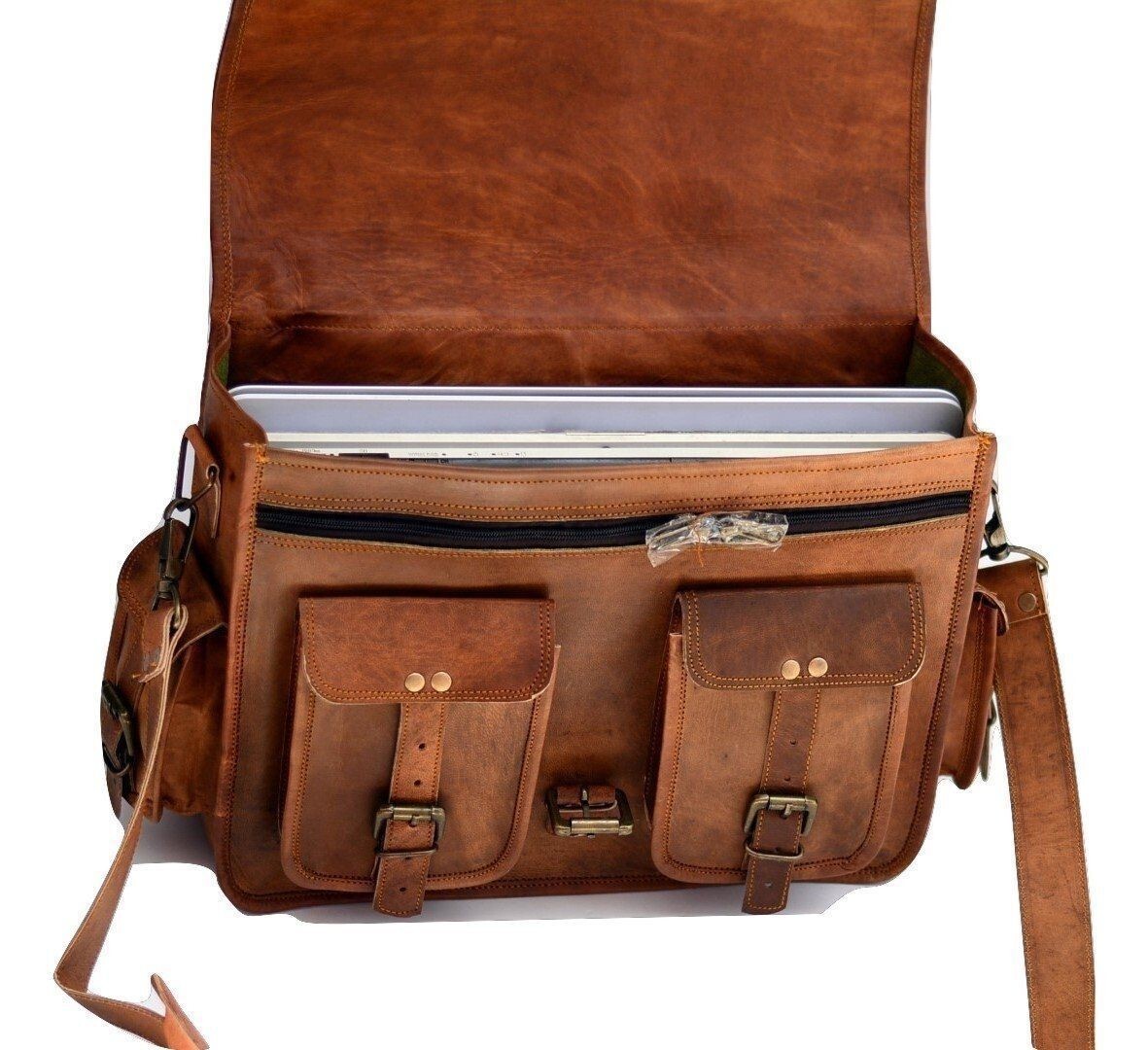 Item Title Men's Leather Messenger Satchel Shoulder Briefcase Business Bag - Leather Bags Item Description Men's Leather Messenger Satchel Shoulder Briefcase Business Bag - Leather Bags Best Product in Leather Bags Descriptions: 100% genuine goat leather messenger bag with a durable inner lining made of canvas. Designed to carry laptops, tab, documents or other personal belongings, etc. A genuine hand made product using Natural leather. Natural oils and light have been used to obtain the style of the leather - chemical free! This bag features a wonderful unique and vintage look, designed to carry mini laptops, tab, documents, personal belongings etc. Perfect for the office, school or as a gift! Specifications: Size:- 12x16x5" inch Made from 100% genuine, strong, lightweight, durable goat leather, tanned without the use of chemicals Adjustable shoulder strap, half flap bag with strap lock & 2 small front pocket. big inner compartment for carrying files, mini laptop's, tab's etc. 2 zipper compartments for important documents/paperwork etc. Inner canvas lining Vintage leather wash Leather softens and darkens with use Handmade in India by experienced craftspeople Item Description:- Material- Real Goat hide ( sustained ) 2 Front pockets, handle on top. Total 4 compartments inside with green color strong canvas lining. 54" long adjustable shoulder broad strap. Real Brass metal accessories used in this Bag. Made by professional and experienced artisans from Rajasthan. Treated by natural ingredients. Natural leather smell will go away within few days from the usage of this bag. Eco friendly Payment Policy We only accept PAYPAL. Payment is to be completed within 3 days of the purchase. Please contact us if you can't make the payment promptly. Otherwise, we will reserve the right to re-list the item and the unpaid item report will be made correspondingly. Shipping Policy We normally ship within 3-4 days after receiving payment. We will offer the tracking no. u can track it during the whole shipping process. After shipment please check your tracking number after 3 to 4 days and please contact us in any query regarding your package as soonest. Please do provide your Full Address and Phone Number by eBay message immediately after making the payment for easy delivery. Please provide your telephone number as well, so that the post office can contact you when your item arrives, or the item will be sent back to us. We will not be able to resend the item in that case so please make sure to provide your contact number. Returns Policy In case of return of the goods, buyer has to borne the shipping charges. Customs duties and other duties levies in destination country are responsibility of the customer. We will exchange the item if returned to us within 14 days of original packing. The item should not be used. No alterations Must be Done to Item. Otherwise We won't take it Back. Buyer Must Inform within Two days after Getting the product about any Issues with the Item. Terms & Conditions There may be Color variation due to difference in resolution of the photo & the actual color. Please clarify all your doubts before buying. In case the item is out of stock your entire amount will be refunded via the same way the payment was made. All winning bids / store purchases are a firm commitment to purchase and you are obligated to complete the transaction. By purchasing/bidding on an item you agree to be bound by the conditions of sale included in the item's description. Offer price is for per piece. We use standard shipping carriers for national & international shipping. Customers are required to provide full & accurate information at the time of order. Feedback Please help us maintain a 5 Star DSR rating in all 4 rating categories, if you feel otherwise, please let us know how we can score a perfect rating from you before you rate us. Please do not leave a negative feedback as a way to communicate. Any rating given to a seller can neither be changed nor modified. So better communicate for faster resolution to any disputes. If you have any concerns regarding your purchase, please contact us via phone or mail, we assure you that a satisfactory resolution will be reached.