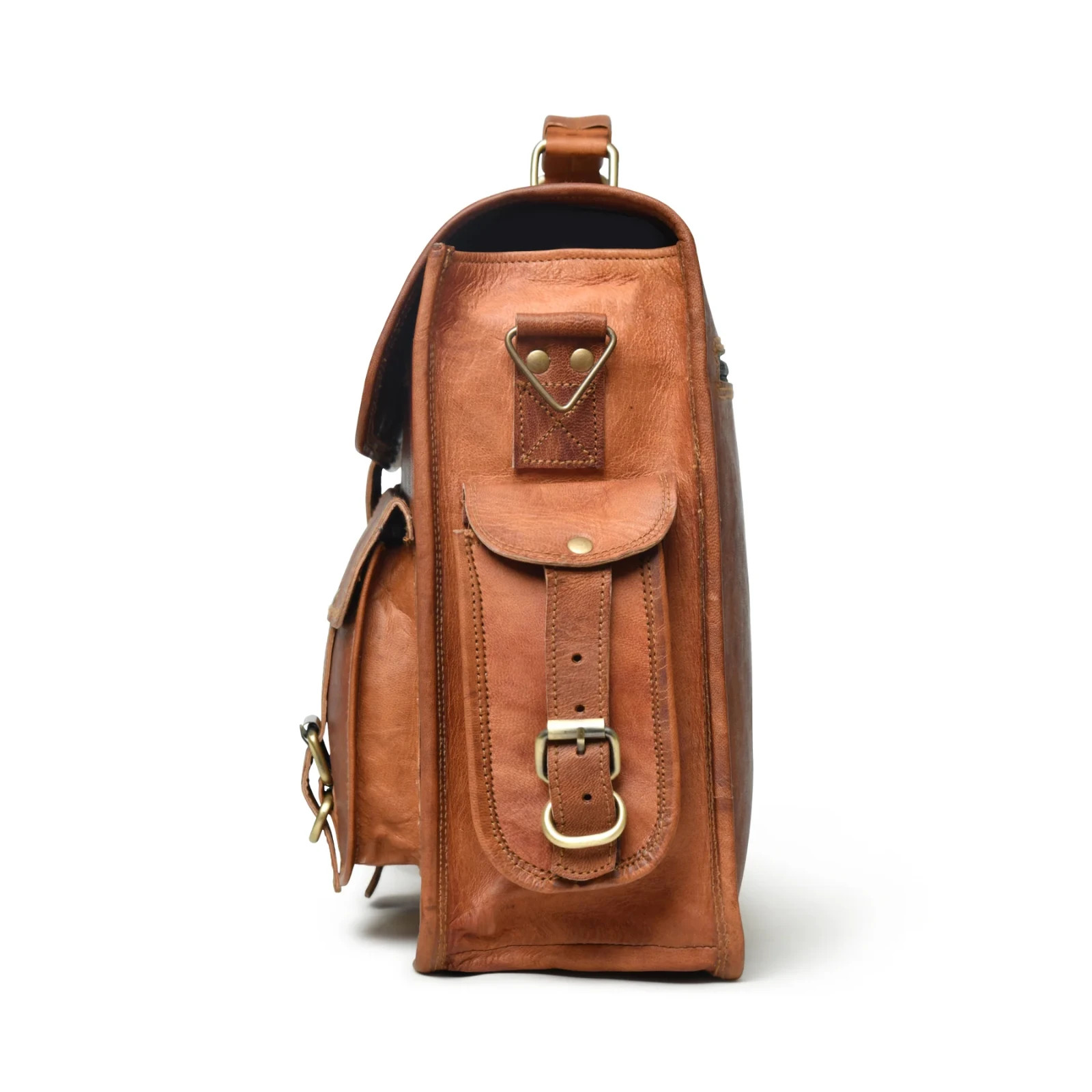 100% genuine goat leather messenger bag with a durable inner lining made of canvas. Designed to carry mini laptops, tab, documents or other personal belonging. A genuine hand made product using chemical/dye-free leather. Natural oils and light have been used to obtain the style of the leather - chemical free! This bag features a wonderful unique and vintage look, designed to carry mini laptops, tab, documents, personal belongings. Perfect for the office, school or as a gift! Specifications: Made from 100% genuine, strong, lightweight, durable goat leather, tanned without the use of chemicals Adjustable shoulder strap, half flap bag with strap lock & small front pocket. 3 big inner compartment for carrying tablet, smart phone's, tab's etc. 2 zipper compartments for important documents/paperwork etc. 2 small pocket in front & 2 small pocket in side. Inner canvas lining Vintage leather wash Leather softens and darkens with use Handmade in India by experienced crafts people
