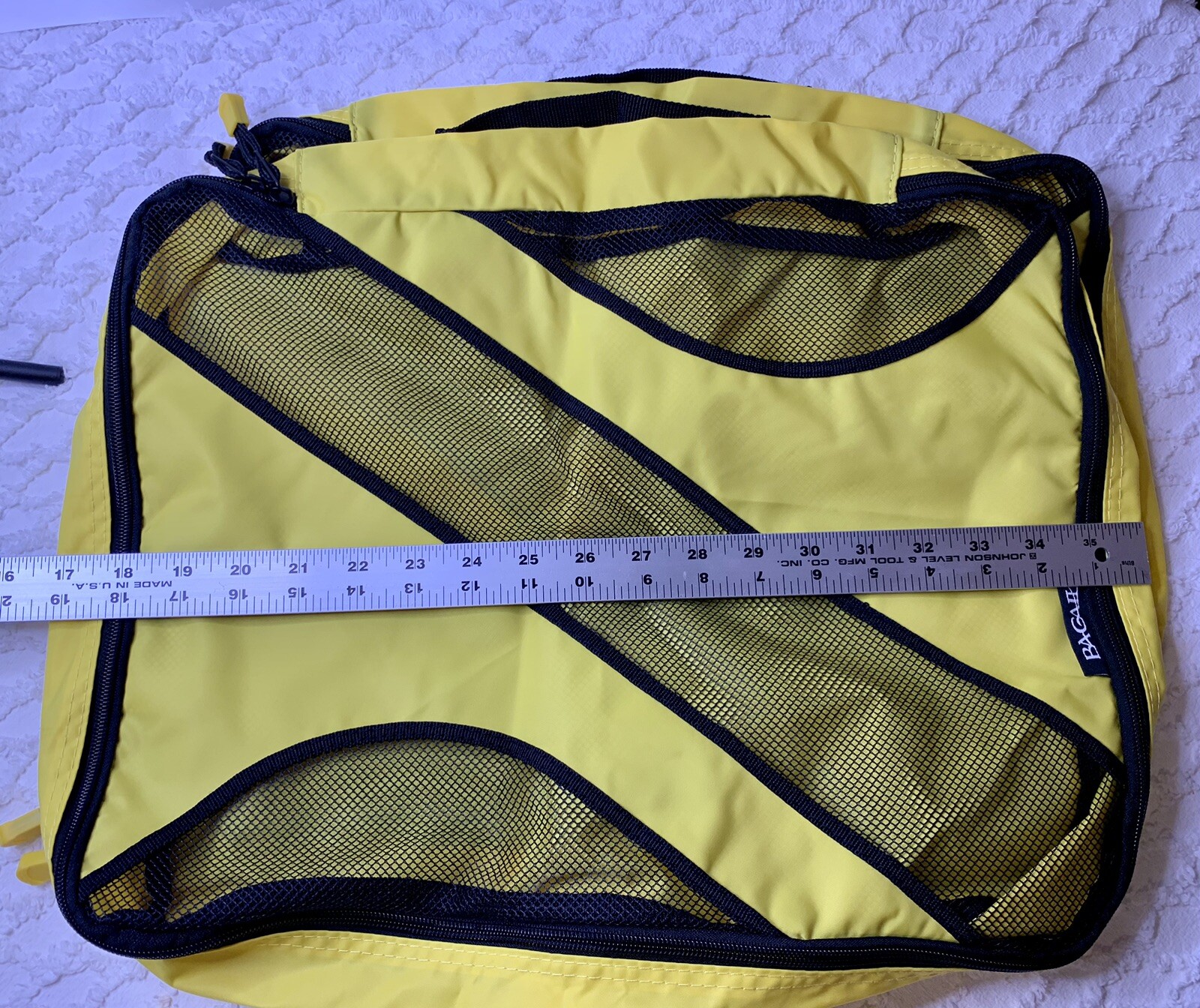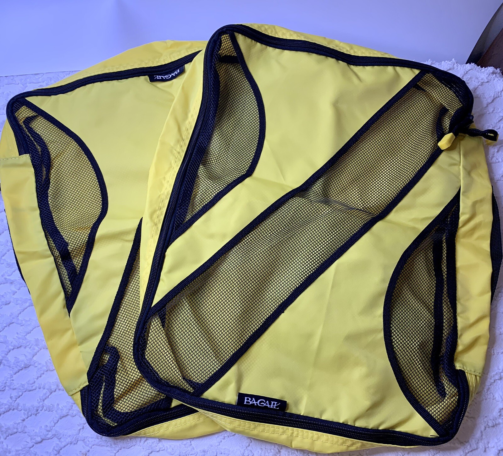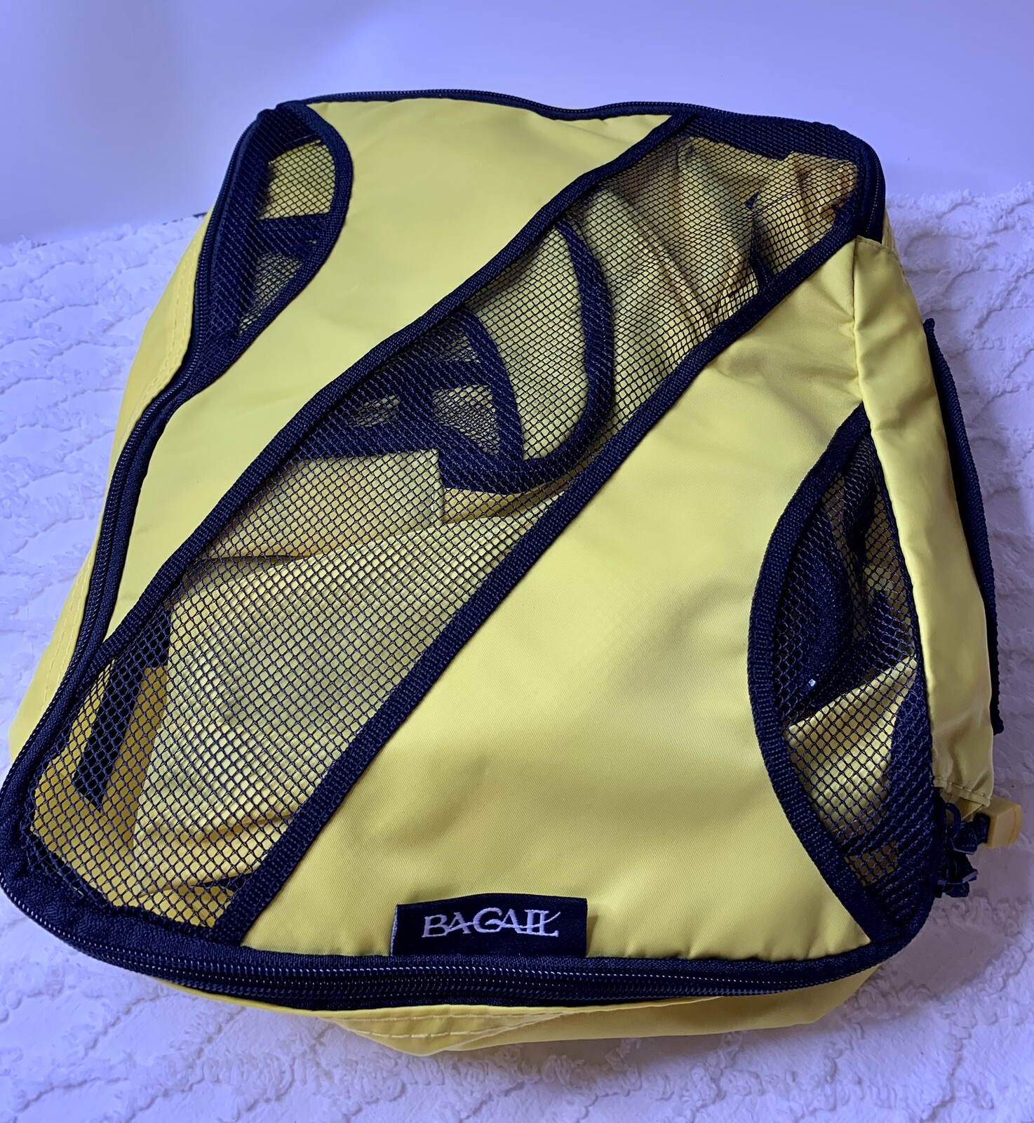 Bagail Packing Cubes Travel Luggage Packing Organizers Yellow Set Of 6 Great pre-owned Cindy, looks unused. Please review pictures. The Bagail Packing Cubes Travel Luggage Packing Organizers in Yellow are a set of 6 pieces made of durable nylon material. These packing cubes come in small, medium, and large sizes to help you efficiently organize your belongings while traveling. Featuring a zipper closure, these storage bags are perfect for keeping your clothes and accessories neat and tidy in your suitcase or travel bag. Ideal for home organization and travel, these packing cubes are a convenient and stylish solution for staying organized on the go. There are 6 total cubes 2 approximately 19” X 17” 2 approximately 14” X 12” 2 approximately 14” X 8” All have nylon handles. Thank you.