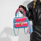 Bags Women Handmade Woven Handbags with Chain Ladies Square Bag