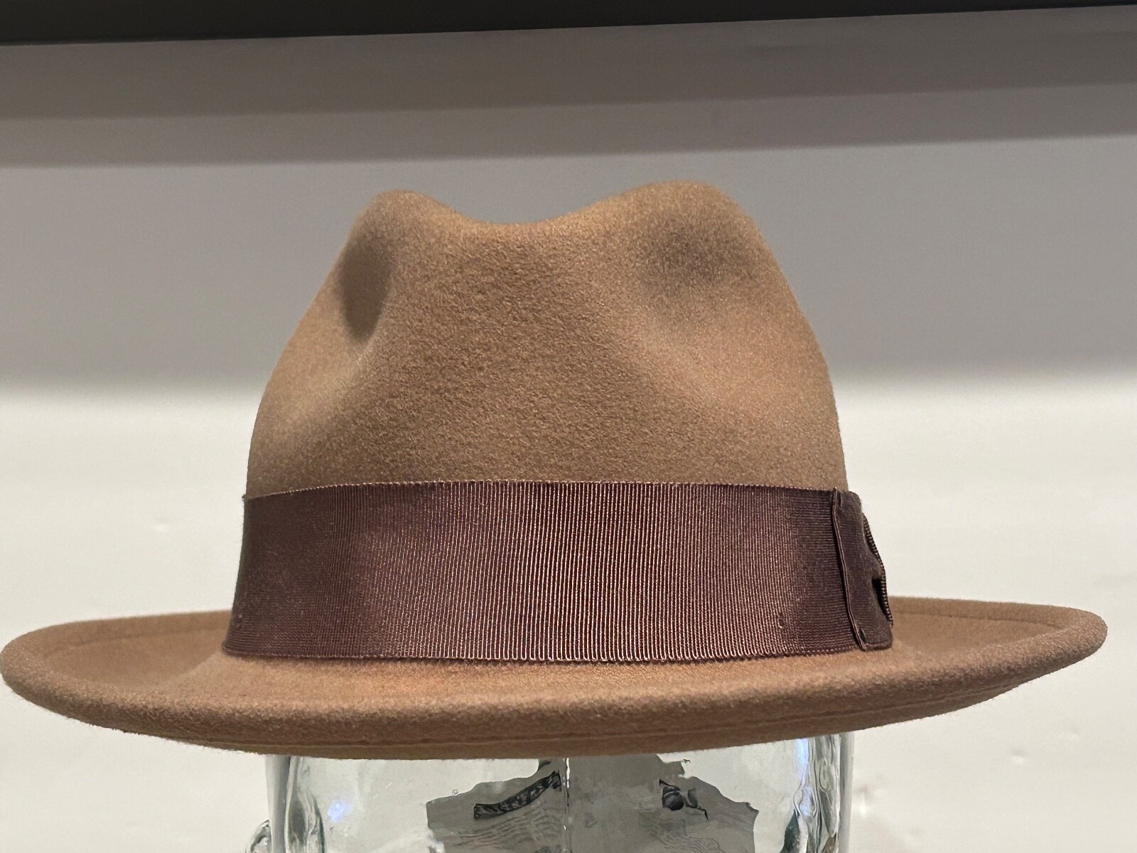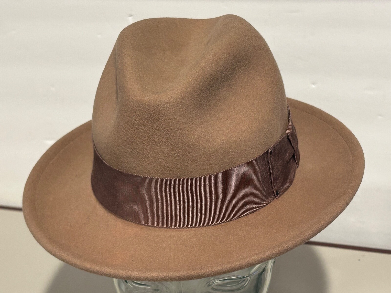 NEW WITH MINOR DEFECT - NO ONE WILL NOTICE!! DEFECT = missing a cosmetic Nailhead on grosgrain band.. Does not effect anything and band 100% intact as these are normally glued on...Shown in picture #8 $130 BRAND NEW WITH TAGS Bailey of Hollywood Hat Company 100% Wool Fedora " Blixen " Size: SMALL (true to size) Color: CAMEL Brand New with tags.... As Shown. Awesome Looking !! thanks for looking!! The Bailey Blixen Hat is a classic fedora with a center dent crown that is sure to become a best seller. Made from soft, packable water resistant Litefelt, this versatile hat has a medium 2 1/2 inch brim that can be worn up or snapped down, and is finished with a simple grosgrain ribbon hat band for a polished look. Made in the USA. Please ask any and all questions before purchasing... Color may be slightly off..and Feathers (if pictured) maybe Crushed...as we are not a photography studio :) thanks.. Please know your size before purchase.., no returns sold as is .... thanks for looking!! Please check out my other Hats , Caps ..Kangol, Bailey, Renegade, Stetson, RedHead, Kaminski Straw and Baseball , Golf etc etc.. PLEASE NOTE: THIS GENERIC Size chart is for general reference only !!! Fit may vary depending on the manufacturer, materials, construction, and hair style. Adult Sizes Size In. Cm. XS 6-5/8 20-3/4 53 S 6-3/4 - 6-7/8 21 - 21-1/2 54 - 55 M 7 - 7-1/8 22 - 22-1/2 56 - 57 L 7-1/4 - 7-3/8 22-3/4 - 23 58 - 59 XL 7-1/2 - 7-5/8 23-1/2 - 24 60 - 61 XXL 7-3/4 - 7-7/8 24-3/8 - 24-7/8 62 - 63 XXXL 8 - 8-1/8 25-1/8 - 26-1/2 64 - 65
