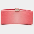 Our eBay Store About Us Contact Us Add to Favorite Sellers Balenciaga Hourglass Small Pink Croc Embossed Leather Top Handle Bag Pink croc-embossed leather gives this Balenciaga Hourglass Small a sharp, defined look with its curved base and structured body. The top handle sits neatly in hand, while the strap offers another way to carry. Sized for essentials, it keeps everything in place with a compact, shaped form. Product Details Brand Balenciaga Includes Original Dustbag, Info Booklet, Detachable Strap, Brand Tag Certified by The Luxury Closet This item has gone through a detailed authentication process overseen by our experts. We offer a lifetime guarantee of authenticity on all our items. How We Check The in-house team of experts at The Luxury Closet is highly trained to verify the authenticity and the condition of the luxury products. They ensure that only 100% authentic items are put on sale.The evaluation process is unique with its own mix of assessment criteria and differs according to the category. Each item is evaluated based on the following combination of hallmarks, hardware, stitching, symmetry, material, craftsmanship, stamping, codes, hologram stickers, and packaging. Our authenticators also check if the items have been modified or amended (e.g., aftermarket diamonds, replaced batteries, repaired bags, etc.) Please note that this handbag may have a perfume scent, as it was stored and packaged in Dubai where such fragrances are commonly used. International Buyers Import duties, taxes and charges are not included in the item price. These charges are the buyers responsibility. Please check with your country’s customs office to determine what these additional cost will be prior to buying.