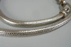 Bali Necklace Bracelet Set Sterling Silver Wheat Snake Chain Indonesia 95 Grams Bali Necklace Bracelet Set Sterling Silver Wheat Snake Chain Indonesia 95 Grams Click images to enlarge Description This is a wonderful Indonesian solid sterling silver (unmarked but tested) wheat snake chain set. The 16" necklace and 8 3/8" bracelet have a width of 3/16" (5/16" wide at caps), and could be worn together with a combined length of 24 1/2". Conditions are very good, and total weight is solid at 95 grams. Payment Payment is expected within 3 days of auction. Shipping Shipping and handling in the US includes tracking . All items are packaged with bubble wrap and box. I am happy to combine shipping when possible. Please contact me for the discount rate, and please do not pay until you receive a combined invoice. Terms of Sale Most items are vintage and or previously owned. Please note condition in the description. Thank you! Images sell! Get Supersized Images & Free Image Hosting Create your brand with Auctiva's Customizable Templates. Attention Sellers - Get Templates Image Hosting, Scheduling at Auctiva.com. Track Page Views With Auctiva's Counter
