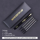 1、Product Description: ★This exquisite gift box ballpoint pen set is an ideal gift for valuable employees,helpful colleagues or loved ones. ★the design from classical style makes the whole branch full of classical and retro charm, so that the owner has spiritual enjoyment. ★This pen has a textured handle for a strong grip. It has a sense of balance and heavy- weight written on the smooth clean lines of the ball tip. 2、Usage scenario: ★It can be used for writing when students study; ★It can be used for business people to write in office; ★It can be presented as an exquisite gift to relatives, friends or partners. 3、Product information: ★Pen weight: 39g, pen length: 14.4cm/5.67inch, built-in Steel pipe, multi-layer baking paint. Usage: cover pulling type. ★we use high-quality ink,allow your pen to glide smoothly across any type of paper. ★You can replace the ink color with a refill from any local stationery store. ★Package: 1 pen, 4 pen refills and a beautiful gift box, sometimes we will give beautiful gifts; 4、Perfect service: ★we promise 100% return, customer satisfaction is our business purpose, bold and assured purchase, and we will give considerate service to every customer. ★Built to last: Our pen is made with a sturdy steel pipe and multi-layer baking paint, ensuring durability and longevity. ★Smooth writing: With a 0.5mm medium point and high-quality black ink, our pen provides a smooth and continuous writing experience that preserves your text for the long term. ★Classic design: Our pen's classical and retro design exudes charm and sophistication, providing a spiritual enjoyment that's sure to impress. ★Comfortable use: At 39g and 14.4cm/5.67inch, our pen is perfectly weighted and sized for comfortable use, making writing a pleasure. ★Complete Package: Get 1 Black pen, 4 refills, and 1 exquisite gift boxes in one package. ★Versatile: Our pen is perfect for learning and office writing, and makes an exquisite gift for relatives, friends, and business partners. ★Satisfaction guarantee: We stand behind our product with a 100% satisfaction guarantee and provide considerate service to every customer, ensuring you can purchase with confidence. ★Attention: Our store's gift pens are printed with the "" trademark on the gift boxes. After purchasing the gift pen, please make sure to check the product carefully. Thank you!