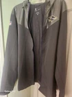 Stay comfortable and stylish on game days with this lightweight Nike rain jacket, featuring the iconic colors and logo of the Baltimore Ravens. The jacket is designed to keep you dry and protected from the elements, all while showcasing your team pride. A hood adds an extra layer of protection against rain, and the generous XL size ensures a comfortable fit for a variety of body types.Whether you're at the stadium or out and about, this rain jacket is a versatile addition to any fan's wardrobe. Its durable construction and thoughtful design make it a practical choice for any football enthusiast looking to brave the weather while supporting their favorite NFL team.