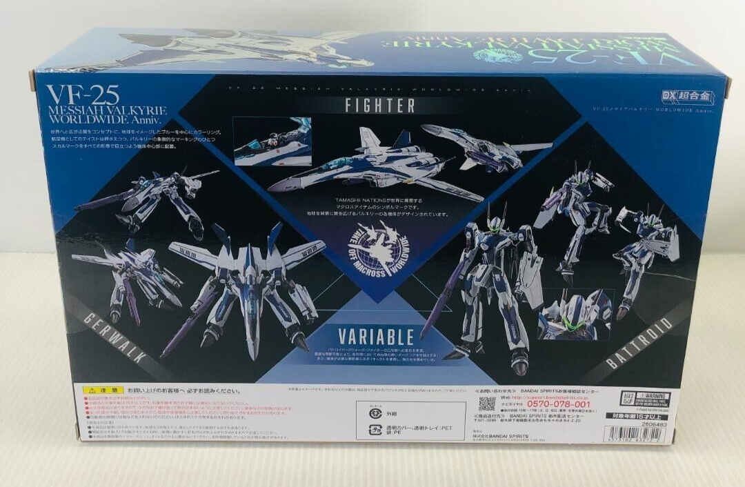 Bandai DX Chogokin Macross VF-25 Messiah Valkyrie Worldwide Anniv. Action Figure Thank you for viewing from among the many products. We have many other items for sale, so please take a look. We hold sales irregularly, so if you're interested, please follow us or add us to your watchlist. Description Condition Brand New! * Brand new and unused item. * Excellent Condition. Appearance Excellent Condition. The package is also in good condition. Please check photos. About This Items From Japan to the world, Valkyrie TAKEOFF!! A special item commemorating the global expansion of the Macross series! A special color Messiah Valkyrie based on VF-25 with blue inspired by the earth! ! Included Items There are no missing accessories. Shipping Ships from Japan. We always send the item with a tracking number. So please place an order without any concern on delivery. You can always track the delivery status. Shipping is only available to the address registered in eBay. If you want us to send another address, please change your address on eBay and then place an order. We usually ship within 10 business days of receiving cleared payment. Shipping is available from Monday to Friday. Weekends are not available because freight (shipping) companies are closed. We do not mark merchandise values below value or mark items as “gifts” – Japan, US and International government regulations prohibit such behavior. About Importer's Obligation Import duties, taxes, and charges are not included in the item price or shipping cost. These charges are the buyer's responsibility. Please check with your country's customs office to determine what these additional costs will be prior to bidding or buying. Thank you for your understanding. If you have any questions or requests, please feel free to contact us.