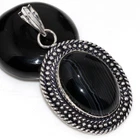 Banded Black Onyx 925 Silver Plated Gemstone Pendant 1.9" Ethnic Jewelry JW