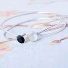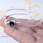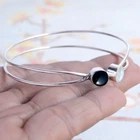 Bangle Black Onyx,Moonstone Gemstone Round Shape 925Sterling Silver HandmadeCuff