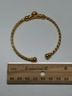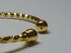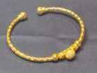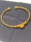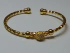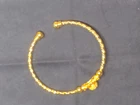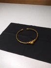 Add a touch of elegance to your outfit with this beautiful bangle bracelet. The open design is perfect for any occasion, whether you're dressing up or down. The gold-plated material adds a luxurious feel to the bracelet, making it a great addition to your jewelry collection. The round shape and lack of stones make it versatile and easy to pair with other pieces. This bracelet is perfect for those who love bangles and want to add a touch of gold to their look. It's pre-owned, but it's in great condition and ready to be worn again.