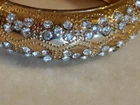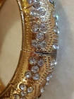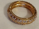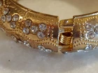 BANGLE BRACELET - HINGED AS SEEN IN PICTURES RHINESTONES GOLD TONE METAL BRACELET 1 3/4 in INSIDE DIA 1/2 in WIDE NO STONES MISSING LITTLE WEAR - AS SEEN IN PICTURES COMES AS SEEN IN PICTURES PLEASE SEE ALL PICTURES IF YOU HAVE ANY QUESTIONS PLEASE ASK OR IF YOU WOULD LIKE TO SEE ANOTHER PICTURE PLEASE LET US KNOW Please read everything and review all pictures ( they are accurate and real pictures of the item that you will receive ( due to we do NOT give RETURNS ) so please review everything before buying we also do give combined shipping or a discount on some shipping depending on what the combined items are ( after you decide how many items you want then let us know and at that time we will review the items and let you know if we will combine or give a discount on part of the shipping at that time due to it will not apply to everything and will be at our discretion only NO RETURN POLICY ( THIS OVERRIDES ALL EBAY POLICIES )