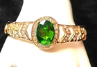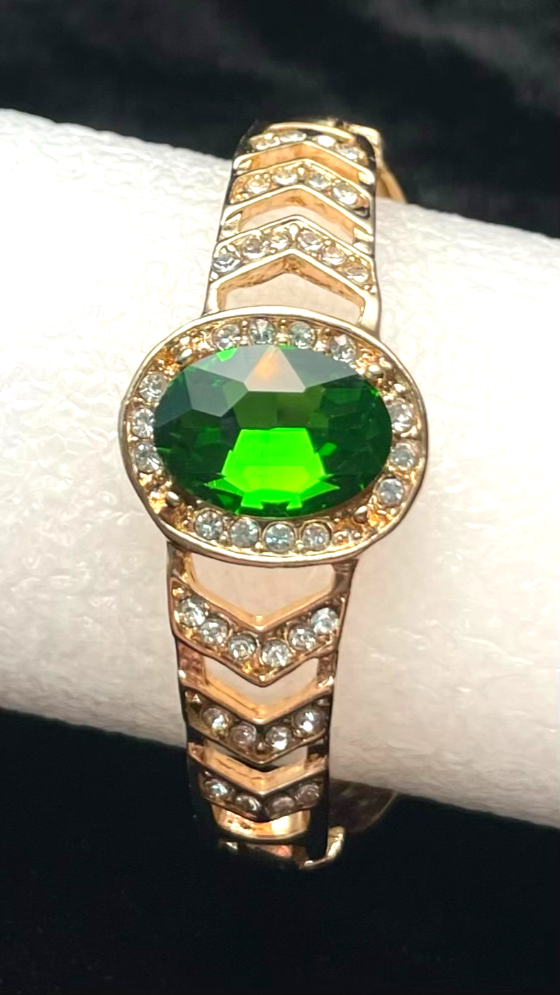 Bangle Bracelet Green Glass Crystal Gold Tone Metal Runway Disco 7" Gold Tone Please contact us with any questions, your satisfaction is our #1 priority and we will do everything to resolve the problem and keep our buyers happy. Set is new without tag. Comes from clean, pet and smoke free home. # 3108