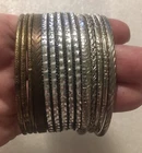 HomeBangle Bracelet Lot Has Black Gold Silver Tones Rhinestones etched Set of 14
