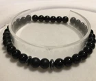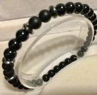 Hand made, Hand-strung. Bangle wrist bracelet, or ankle bracelet made with Black onyx beads with silver accents. 4mm spiritual beads, with clear stretch cord which is durable and will slip on to fit most any wrist or ankle size.
