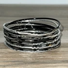 Bangle Stack Set 12 Etched Bracelet Silver Tone Black Alternating Width Sparkle