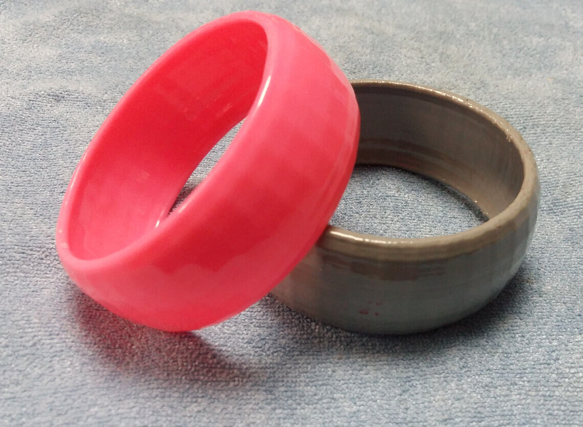 Bangle bracelets NEON Pink - Gray 3D PRINTED Chunky Cuff light bracelet 2 pieces 2x Bracelets 3D PRINTED, made from ABS plastic with 3D printer FDM technology. Bracelets have glossy finish. Dimensions: Inner diameter approx: 65mm. Width approx: 29mm. Outer diameter approx: 80mm. L_03