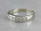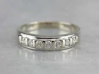 Bar Set Diamond Wedding Band A little different than the average channel set band, this piece makes a bold statement. The simple lines and bright, polished gold compliment nicely with the row of diamonds channel set down the center! This can be worn as a dinner ring, right-hand ring, anniversary band, promise ring, alternative engagement ring... The low profile and simple shape mean it can be worn just about anywhere, anyway, with or without other rings stacked next to it! Metal: 14K White Gold Gem: 7 Diamonds totaling .28 Carats, H in Color, I1 in Clarity Width of Band: 4.5 mm Height off Finger: 3.3 mm Ring Size: 7.25 Marks: "PAR 14K" Stamped on the inside band Bar Set Diamond Wedding Band A little different than the average channel set band, this piece makes a bold statement. The simple lines and bright, polished gold compliment nicely with the row of diamonds channel set down the center! This can be worn as a dinner ring, right-hand ring, anniversary band, promise ring, alternative engagement ring... The low profile and simple shape mean it can be worn just about anywhere, anyway, with or without other rings stacked next to it! Metal: 14K White Gold Gem: 7 Diamonds totaling .28 Carats, H in Color, I1 in Clarity Width of Band: 4.5 mm Height off Finger: 3.3 mm Ring Size: 7.25 Marks: "PAR 14K" Stamped on the inside band × × × × × × Buy now and save! Shipping info Click the Shipping & Payments tab above the listing description for more info Click the Shipping & Payments tab above the listing description for more info! Additional delivery notes PICK UP OPTION Sorry, our items are NOT available for pick-up. PAYMENT Immediate payment is required upon selecting "Buy It Now" or upon checking out through the cart. We accept payment via U.S. PayPal accounts and all Major Credit Cards, Debit Cards & Google Pay. We are legally required to collect sales tax in those states and localities where we maintain a physical presence (nexus). The applicable amount of sales tax charged to an order will be calculated based on the shipment destination's state and local sales tax laws. Thank you for shopping with us on eBay! Additional Information No additional information at this time Ask seller a question You might also like Vintage Gold Multiple Gemstone Tree Pin Vintage Poodle Charm with Ruby Details Vintage E Monogrammed Cufflinks 14 Karat Gold Retro Era Pocket Watch Chain Contact To contact our Customer Service Team, simply click the button here and our Customer Service team will be happy to assist. Ask seller a question © Market Square Jewelers Shipping & Payments Click the Shipping & Payments tab above the listing description for more info Payment Accepted Payment Methods Immediate payment is required upon selecting "Buy It Now" or upon checking out through the cart. We accept payment via U.S. PayPal accounts and all Major Credit Cards, Debit Cards & Google Pay. We are legally required to collect sales tax in those states and localities where we maintain a physical presence (nexus). The applicable amount of sales tax charged to an order will be calculated based on the shipment destination's state and local sales tax laws. Thank you for shopping with us on eBay! Returns Returns are accepted Items must be returned within 14 days of the auction ending Buyer will pay for return shipping. eBay integration by