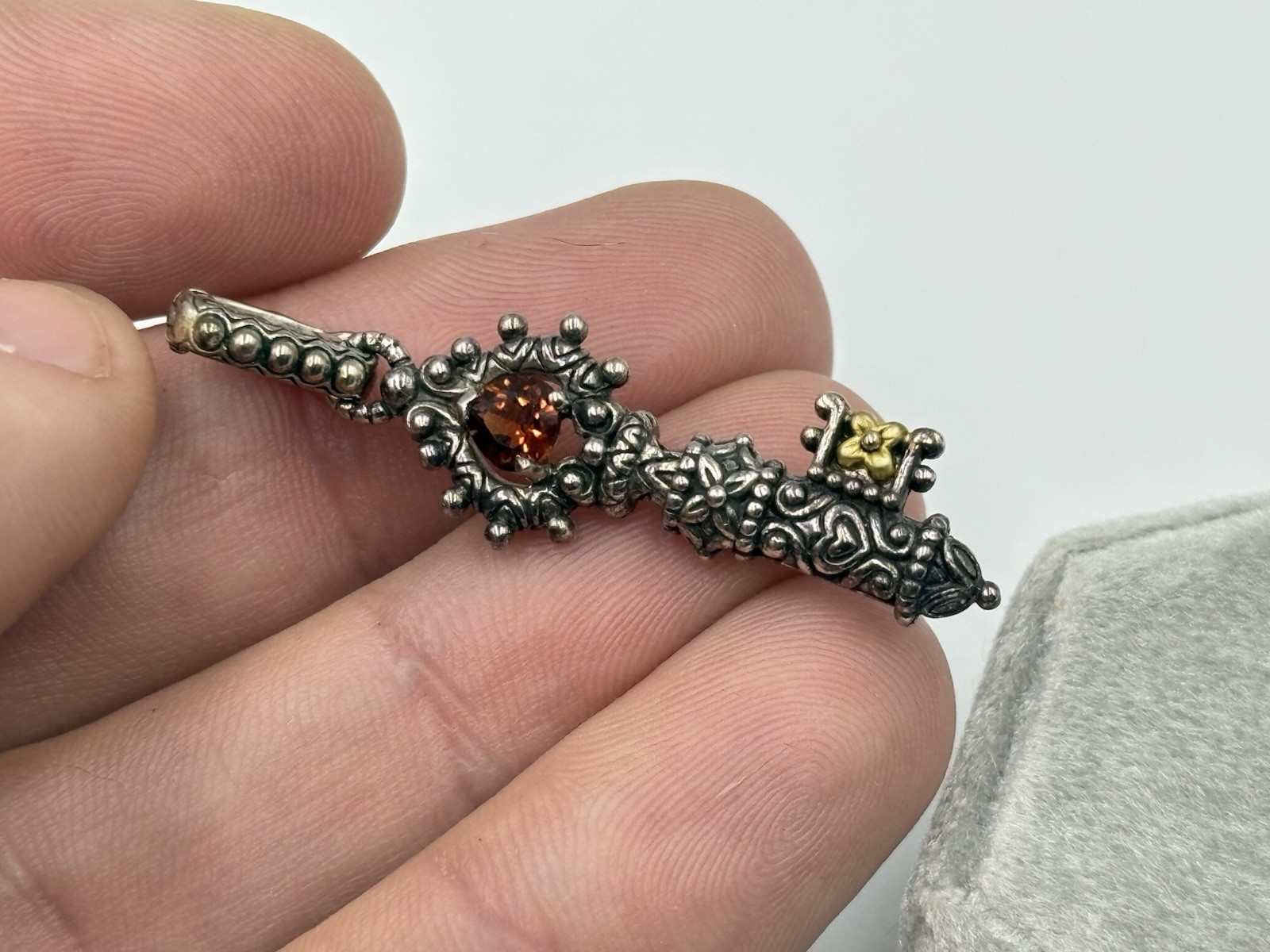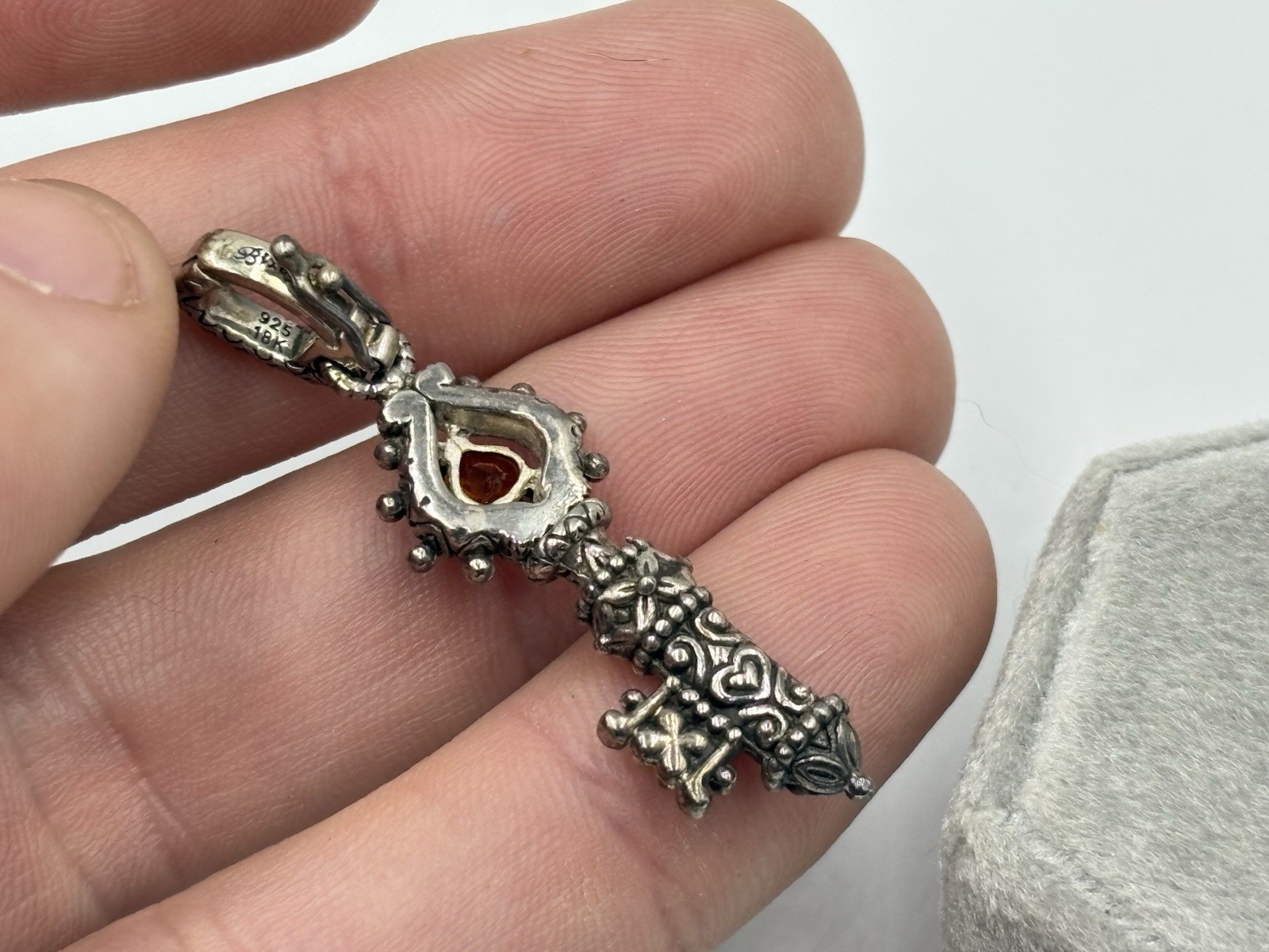 Barbara Bixby Sterling Silver 18K Gold Citrine Skeleton Key Pendant Enhancer Marked and tested as sterling silver w/ 18k gold accent Weighs 6.8 grams 1 7/8" long 1/2" at its widest