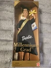 This is a Barbie Millennium Grad Special Edition 25708 doll from the year 2000. The doll is part of the Barbie franchise and features blonde straight hair, blue eyes, and a light complexion. It is dressed in a graduation gown and comes with a graduation sash & cap, diploma, shoes, and a hair brush. This 11.5-inch doll is a play doll suitable for a girl and is in its original packaging. The box is in pristine condition!
